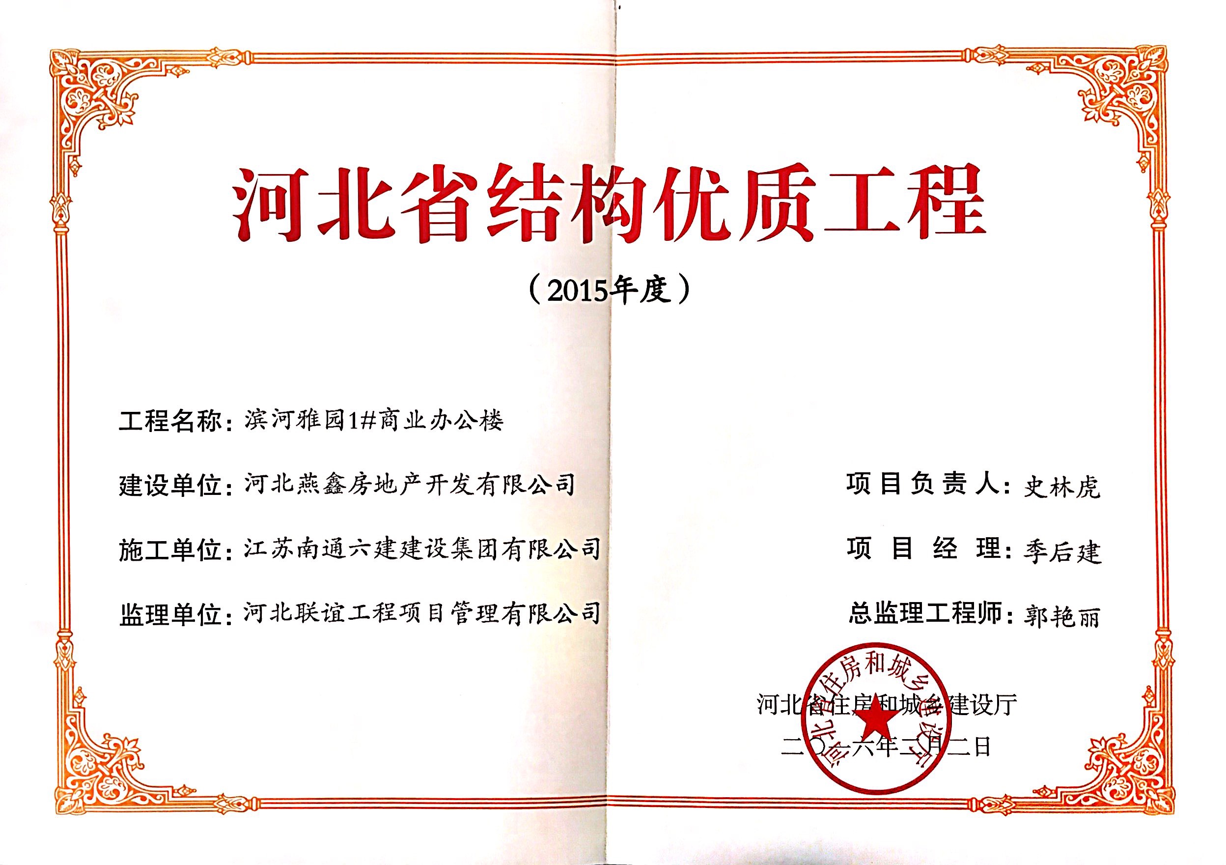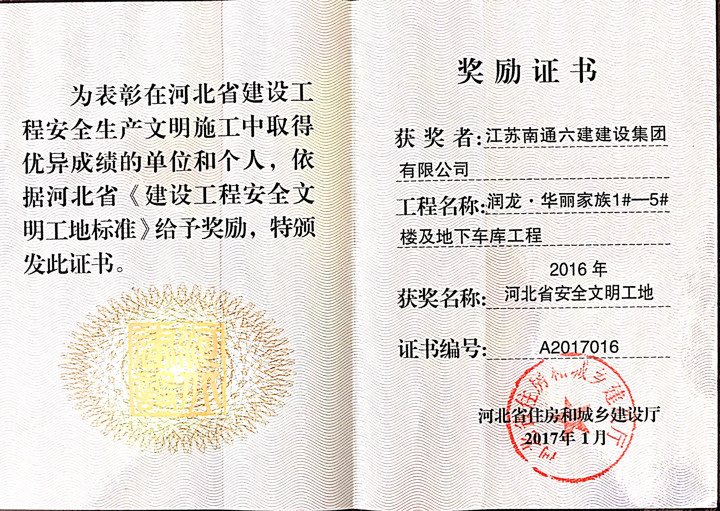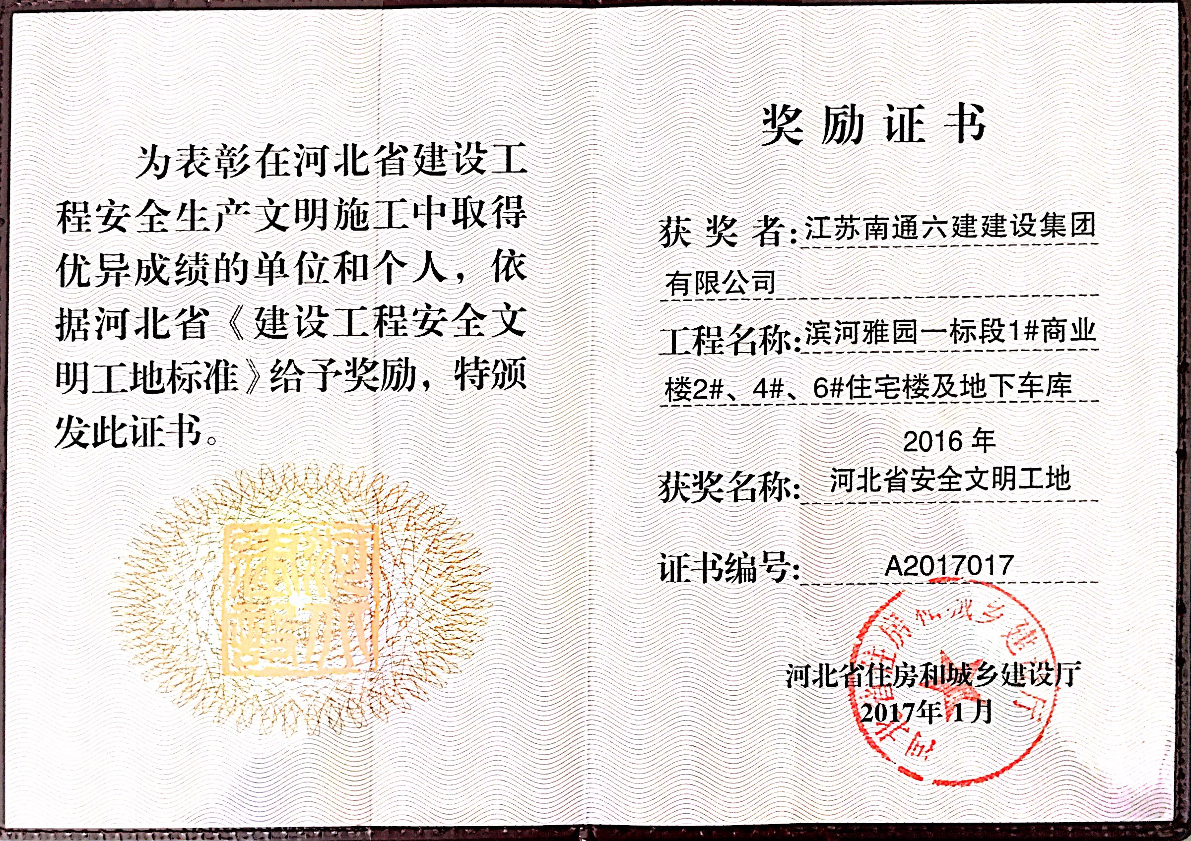 江蘇南通六建建設集團有限公司河北公司自1995年進(jìn)入河北市場(chǎng),公司創(chuàng )立20多年來(lái),河北公司幾代員工秉承“團結、奉獻、求實(shí)、創(chuàng )新”的企業(yè)精神,奮勇拼搏,攻堅克難,以?xún)?yōu)秀的施工質(zhì)量和良好的服務(wù)態(tài)度在河北打造了六建一流的品牌。