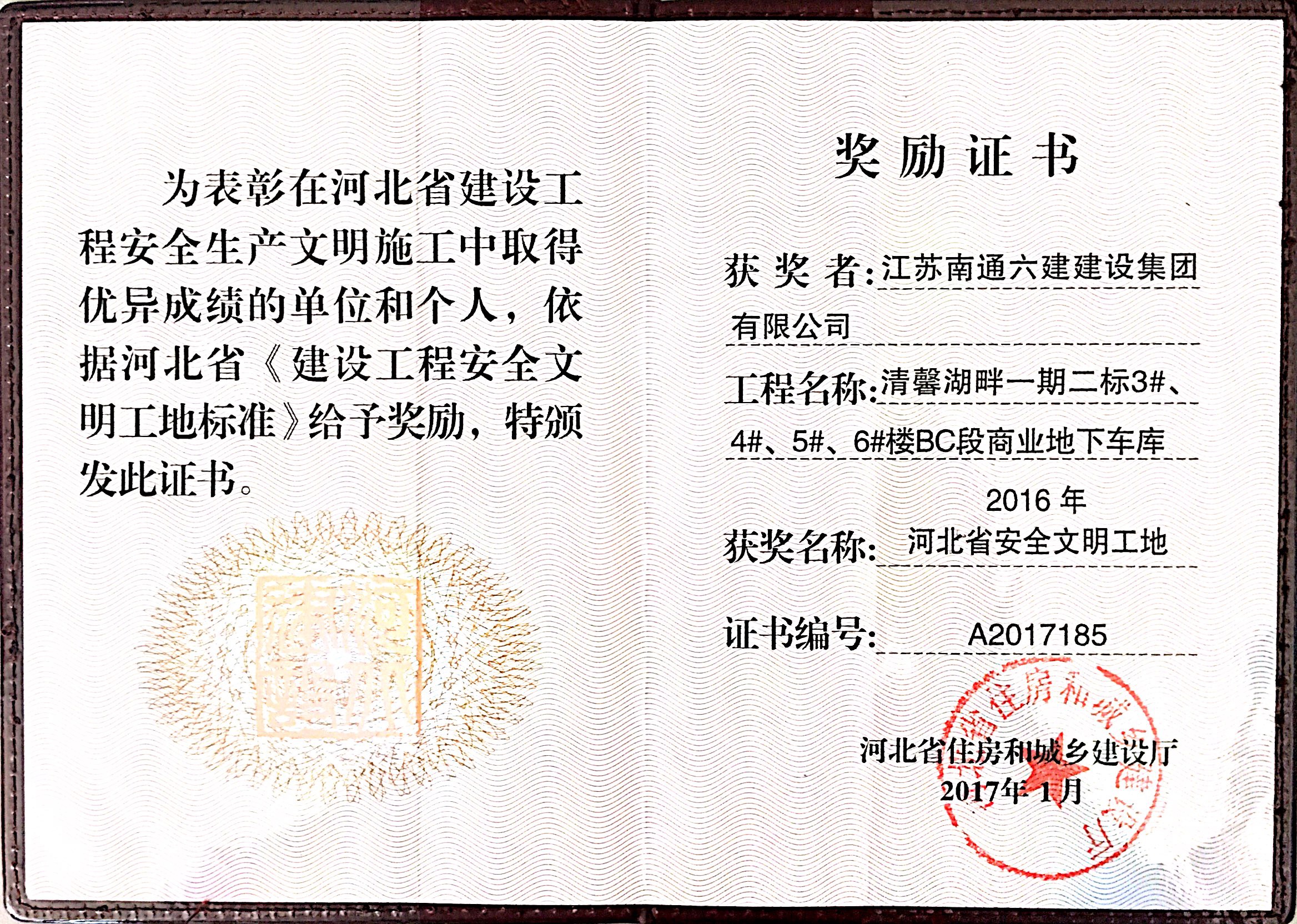 省優(yōu)質(zhì)結構工程/省級安全文明工地 |